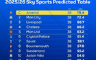 天空预测英超排名:阿森纳夺冠,曼城第二利物浦第三曼联第五